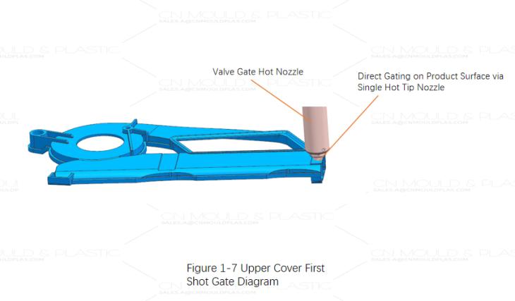 The base is a single-shot PP part and can be molded using a single valve-gated hot nozzle directly on its surface, as shown in Figure 1-9.