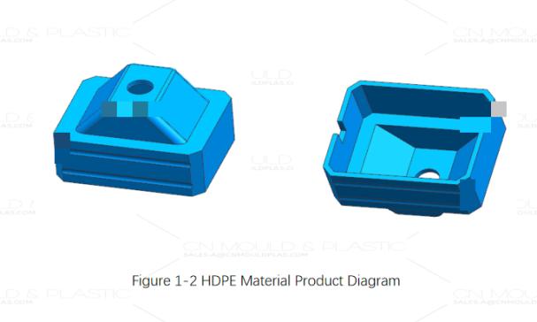Figure 1-6 shows the gate diagram for the first shot (hard HDPE). A submarine gate is used at the corner of the product, which does not affect the product’s appearance and allows automatic separation. Figure 1-7 shows the gate diagram for the second shot (soft TPE), which also uses a submarine gate. However, during product design, a notch must be reserved on the side of the first shot (hard HDPE) for the gate of the second shot (soft TPE).