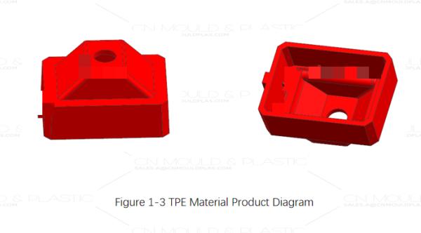 Figure 1-1 shows a two-color product drawing of an automotive part. The outer green layer is made of HDPE compound (hard plastic), and the inner orange layer is made of TPE compound (soft plastic).