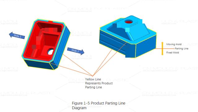 After determining the injection sequence of the first and second shots, based on the basic principles of simple two-color mold design—where the fixed mold part has different product shapes and the moving mold part is identical—the second shot (soft TPE) needs to be formed in the fixed mold. Thus, the ejection direction is determined: the side with the notch is designed on the fixed mold side, as shown in Figures 1-4 and 1-5.